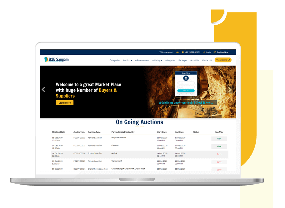 electronics, machinery, and apparels.On B2B Sangam sellers can accelerate their sales with the help of genuine buyer.